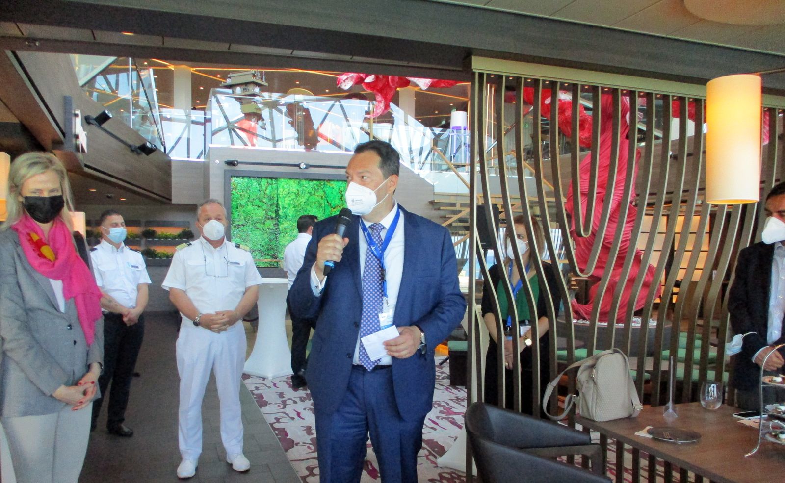 One day before Mein Schiff 5 2021 season maiden voyage, on May 13, 2021, TUI Cruises CEO Mrs. Wybcke Meier, the Master Cpt. Yiannis Anastassiou and the crew were officially welcomed during a special ceremony, for a restricted number of honored guests.